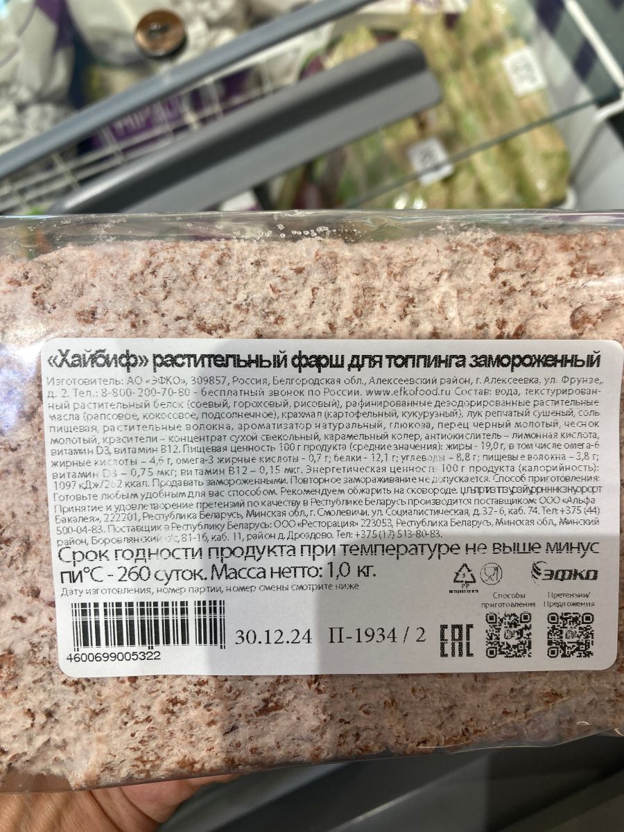Читать все статьи«Хайбиф», Растительный Фарш для топпинга, замороженный