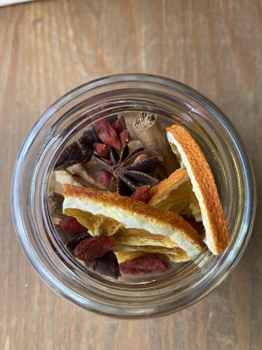 Ароматные специи и фрукты для зимнего глинтвейна в стеклянной баночке, объемом (200мл)