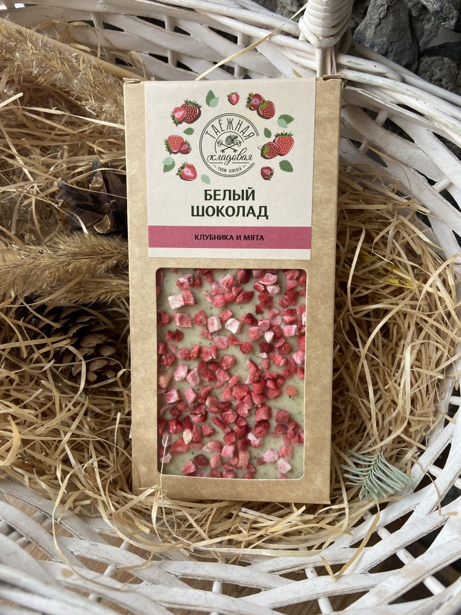 Белый шоколад клубника и мята 90 гр.