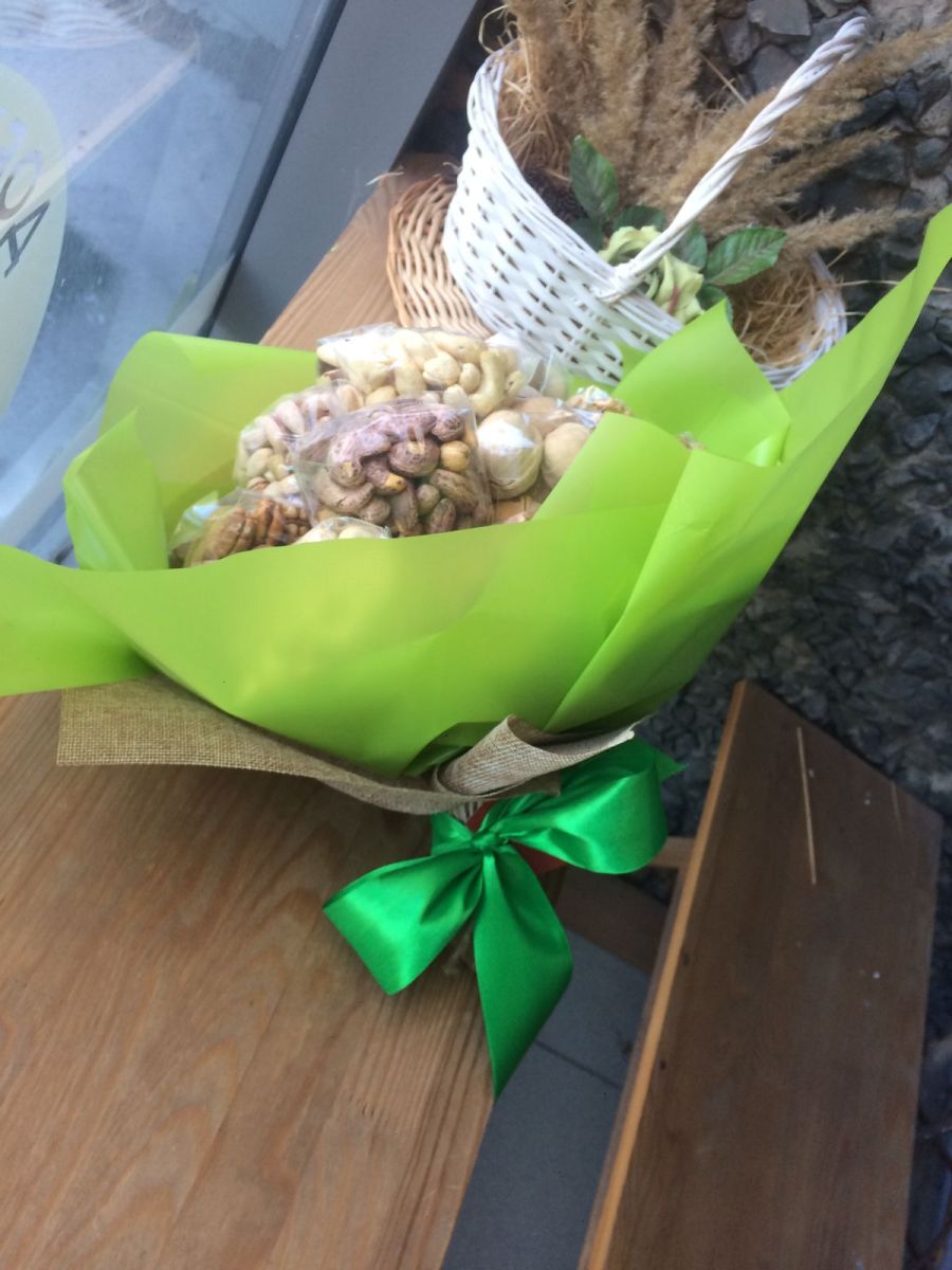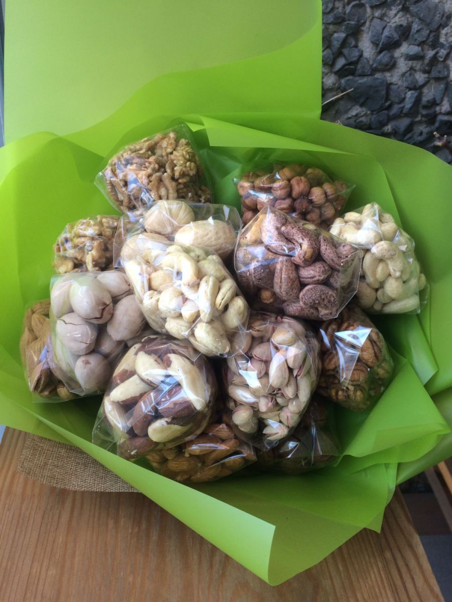 состав: орех кешью крупный очищенный Вьетнам, кешью жареный в скорлупке, Индия, миндаль Чили, грецкий очищенный Чили, фундук, миндаль в раскрытой скорлупке, Таджикистан, пекан очищенный, Таджикистан, пекан в скорлупке, Вьетнам