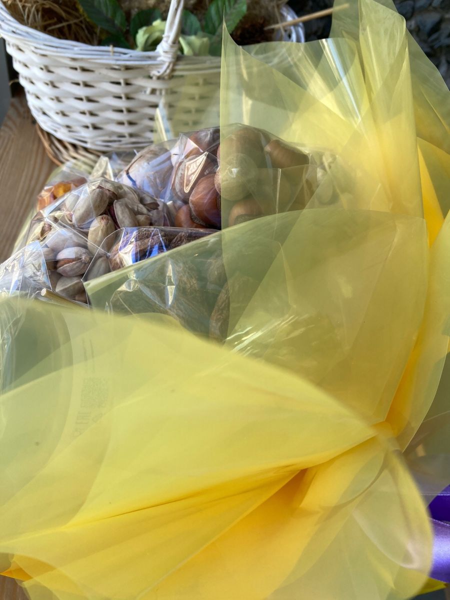отличные, оригинальные подарки учителям, педагогам и воспитателям на выпускные! ВКУСНЫЙ БУКЕТ Вес 1.975 кг Натуральная курага, манго в шоколаде хурма слайсы, груши вяленая из Армении фисташка из Ирана фундук Абхазия скорлупке Миндаль из Чили очищенный пекан в скорлупке макадамия в скорлупке финик королевский халва порционная: арахисовая подсолнечник, кунжутная кешью очищенный крем мёд изюм сочный гибрид