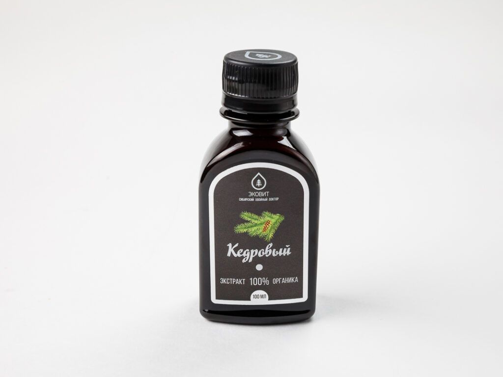 ЭКСТРАКТ ХВОЙНЫЙ НАТУРАЛЬНЫЙ КЕДРОВЫЙ - концентрированный напиток на каждый день, с насыщенным хвойным вкусом и приятной ноткой аромата вареной шишки. Экстракт натуральный кедровый - 100% натуральное водорастворимое вещество, которое производится из хвои кедра сибирской, растущей в экологически чистых районах Сибири, путем паровой дистилляции. Вещество не содержит тяжелых смол и эфиров, консервантов. Изучен при поддержке Института Химии г.Сыктывкар; ФГБУ «Пятигорский Государственный Научно-Исследовательский Институт Курортологии Федерального Медико-Биологического Агентства»; Омского Туберкулезного диспансера, Института питания г. Красноярск Чем полезна хвоя Хвоя кедра обладает мощными антицинготными свойствами, по силе воздействия приравнивается к лимонам, апельсинам, другим цитрусовым. Сибирские целители использовали настои, отвары из свежих игл и утверждая, что польза кедровой хвои для организма бесценна: повышает эластичность, прочность сосудов, способствует очищению от шлаков, холестериновых бляшек; улучшает состав, качество крови, совершенствует структуру, насыщает энергией; останавливает маточные, внутренние кровотечения; считается мощным иммуномодулятором, незаменимым ослабленным, истощенным болезнью людям; укрепляет сердечно-сосудистую, эндокринную, нервную систему, снимает усталость, нервное напряжение. повышает физическую и умственную работоспособность, усиливает дренаж лимфы и стимулирует расщепление накопившихся в организме жиров. Устраняет функциональные нарушения сердечного ритма снижает уровень холестерина. Кедр, как и любое хвойное растение, по мимо полезных свойств, имеет ряд противопоказаний в применении: детский возраст до 1 года, беременность, индивидуальная непереносимость. Так как хвоя кедра способна повышать кислотность применять вещества из хвои желательно после еды, и 3 раза в день.