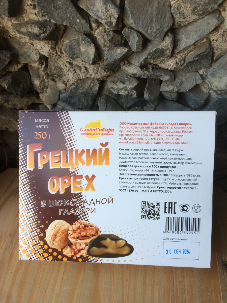 Читать все статьиГрецкий в шоколадной глазури 250 гр Слада Сибири