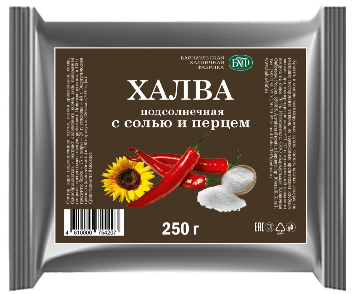 Читать все статьиХалва подсолнечная с солью и перцем 250 г/30 шт