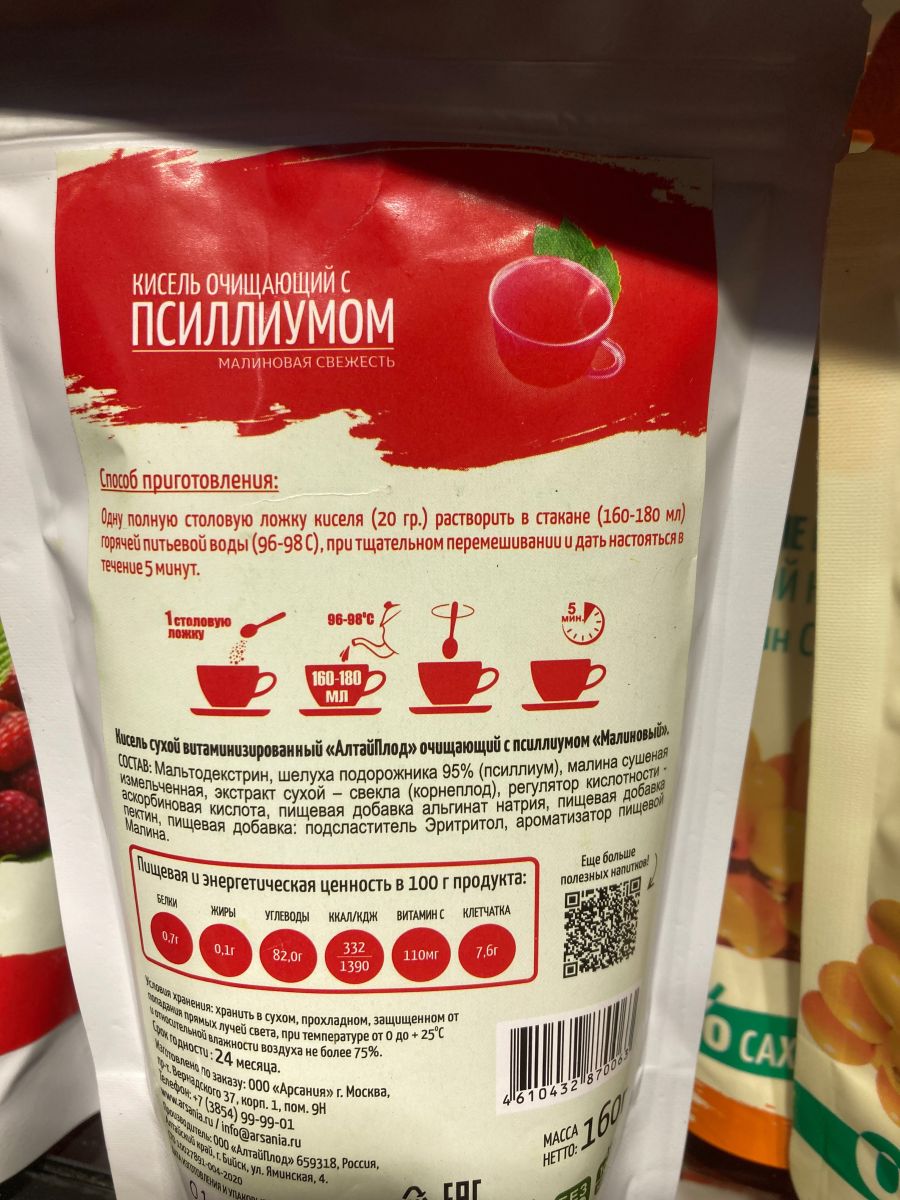 Кисель очищающий с псиллиумом, малиновая свежесть