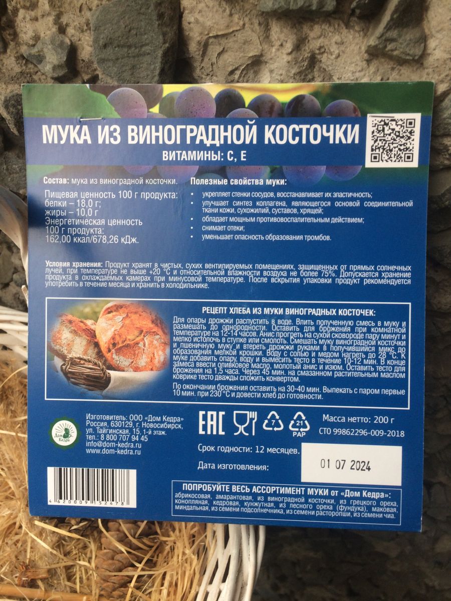 Мука из виноградной косточки 200гр