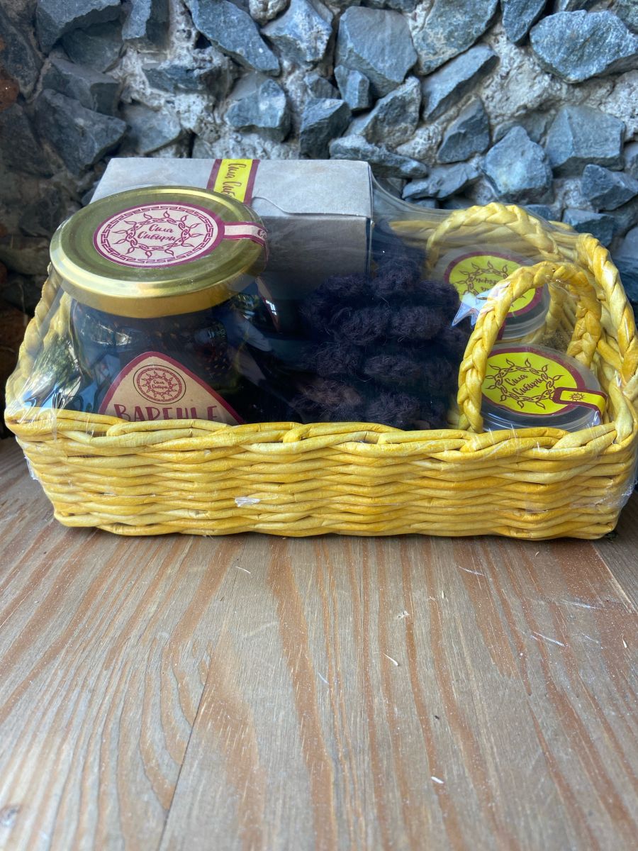 Иван чай, варенье из сосновых шишек, сушеные ягоды, вязаная кедровая шишка