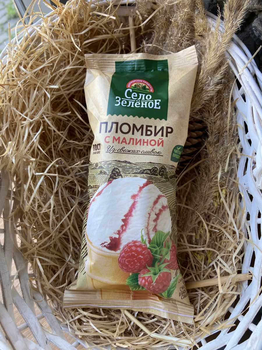 Пломбир с малиной в вафельном стаканчике 70гр Снло Зеленое