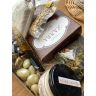 В состав набора входит: Ядро кедрового ореха свежий урожай Миндаль и фундук в шоколадной глазури Пастила от фабрики сладостей Козлова Халва с какао от фабрики сладостей Козлова Мед порционный разнотравье Нежный крем-мед в ассортименте Чай Улун черный с фруктами прямиком из Индии Состав коробочки примерный и может меняться исходя из предпочтения покупателя и цен продукции:) Цены и ассортимент меняются при индивидуальном наполнении заказа