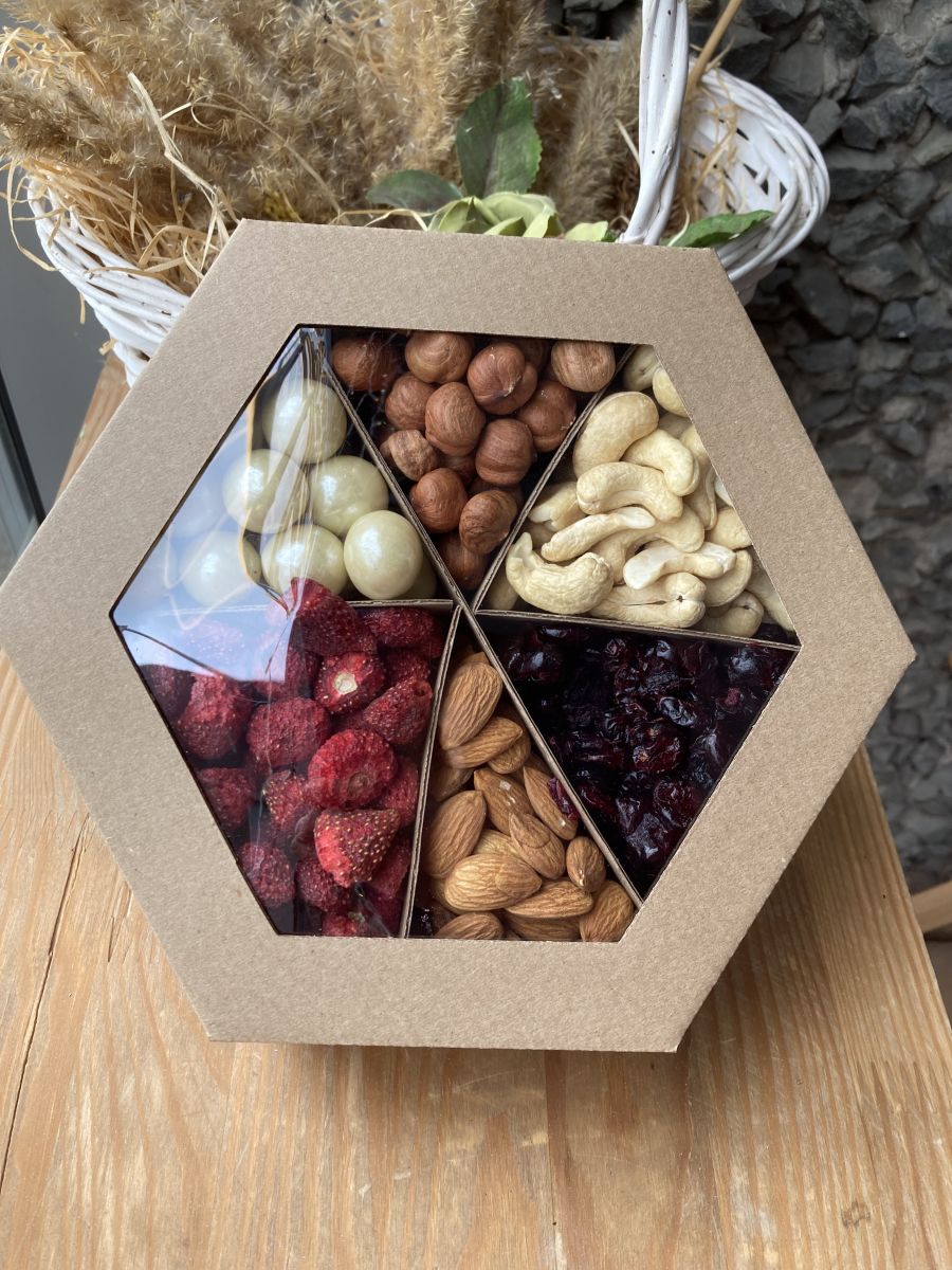 фундук или миндаль в глазури (С-Петербург), миндаль Чили, кешью отборный, Вьетнам фундук очищенный, Азербайджан клубника натуральная сублимированная, (травники, Уяр) клюква вяленая, натуральная, цукат