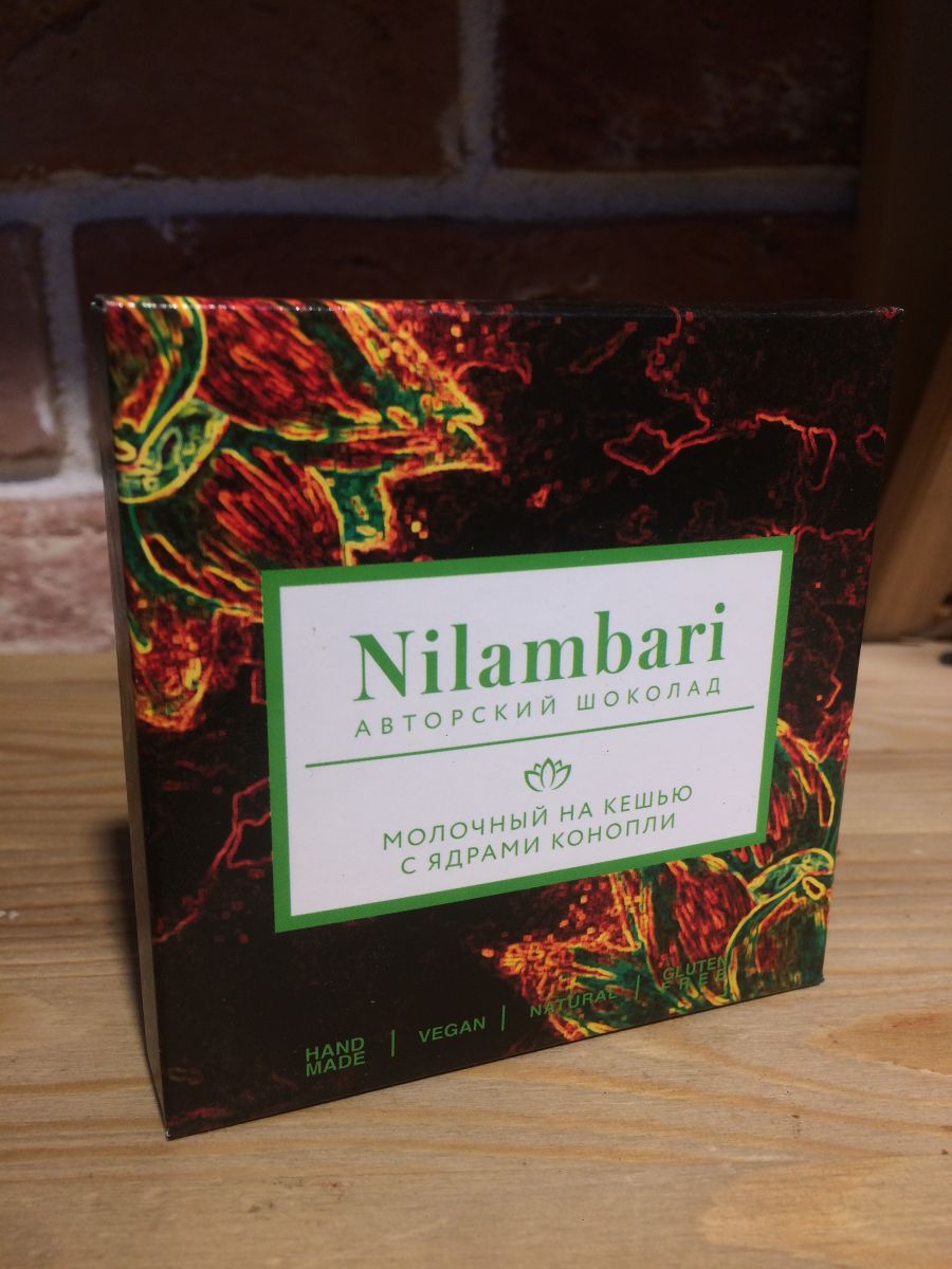 Шоколад Молочный на кешью с ядрами конопли 65гр Nilambari