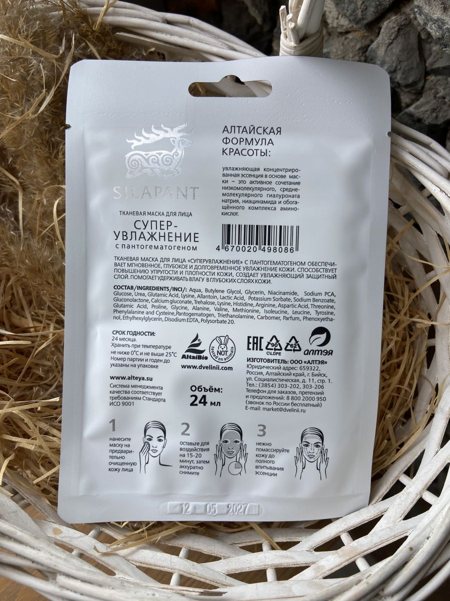 Силапант Тканевая маска для лица «Суперувлажнение» с пантогематогеном, 24 мл