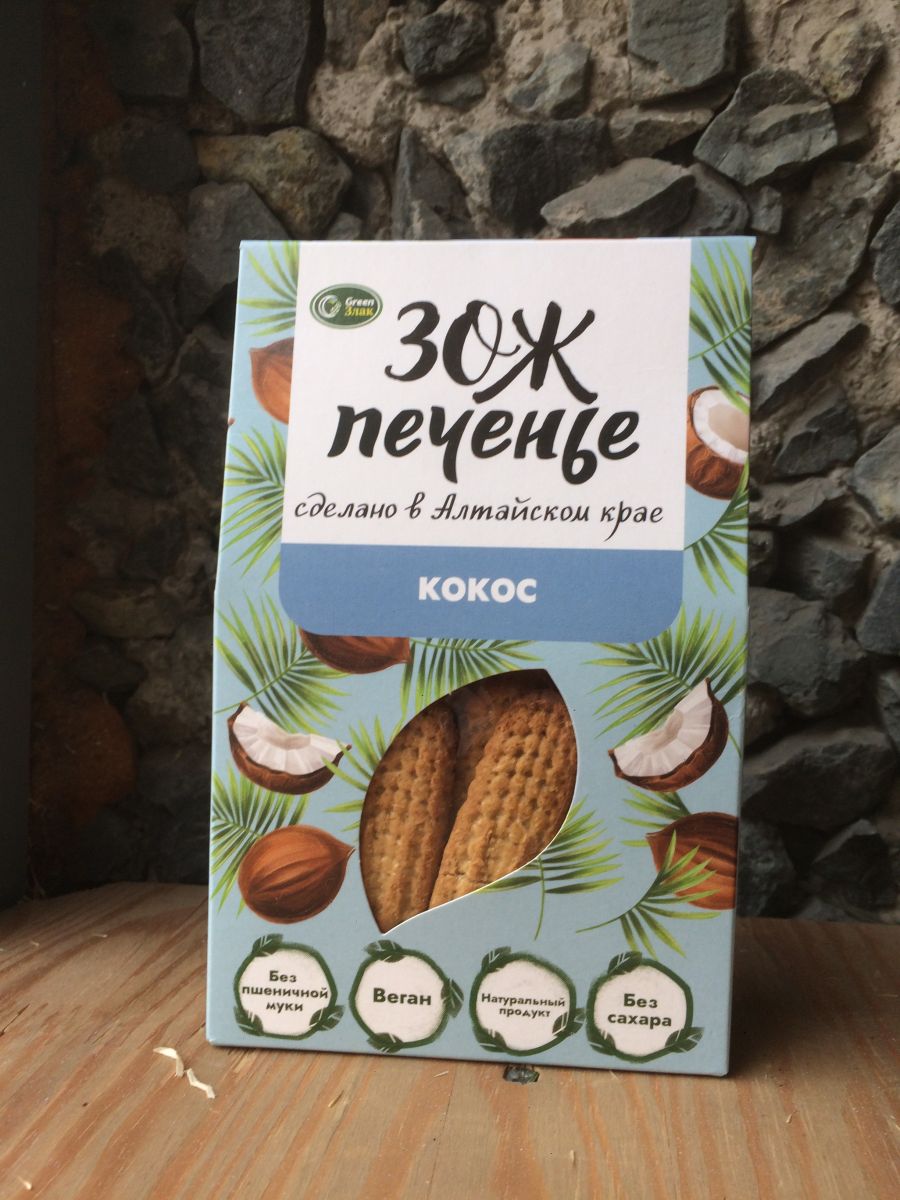 ЗОЖ печенье с кокосом,100гр без сахара грин злак