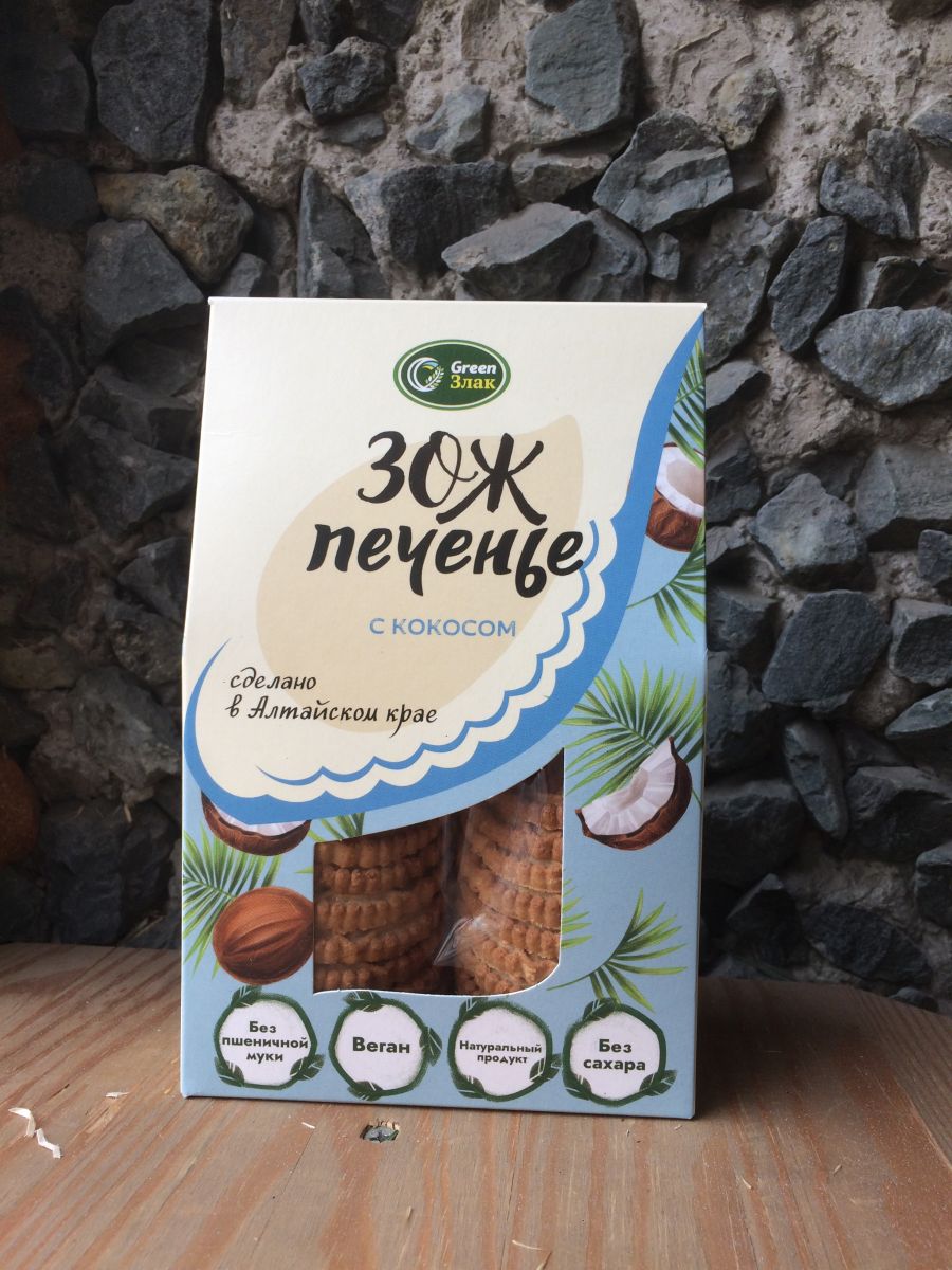 ЗОЖ печенье с кокосом,150гр без сахара грин злак